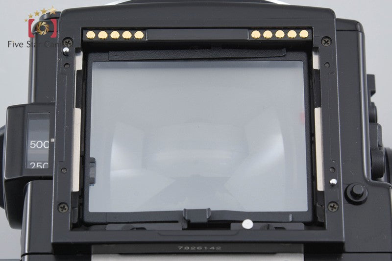 | Includes | Lens, front cap, lens filter, AE-III prism finder, 120 roll film magazine, cap |