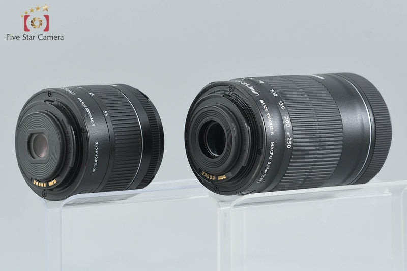 | optics | Lens Condition: There are a few visible spots of dust inside the 18-55mm lens, but they do not affect shooting. We have inspected it under strong light and found no fungus, haze, scratches, or separation. There are a few visible spots of dust inside the 55-250mm lens. There is a thin haze in some areas of the interior that is barely noticeable except in backlight. Viewfinder Condition: A small amount of dust is visible inside the viewfinder under strong light. There are two spots of faint fungus on the focusing screen that are barely noticeable under light. There is a thin haze in some areas of the interior that is barely noticeable except in backlight. This does not interfere with focusing through the viewfinder, as it is not visible when focusing. |