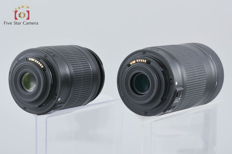 | optics | Lens Condition: A small amount of dust can be seen inside the 18-55mm lens when exposed to strong light. There is a thin haze in some areas of the interior that barely affects the view except in backlit conditions. The 55-250mm lens has a few visible spots of dust inside. There is a thin haze throughout the interior that barely affects the view except in backlit conditions. Viewfinder Condition: There are a few visible spots of dust inside, but this does not affect photography. We have checked the viewfinder under strong light and found no fungus, haze, scratches, or separations. |