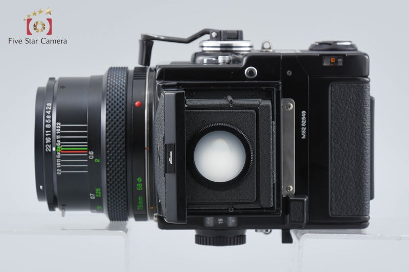 | Includes | Lens, front cap, waist level finder, 120 roll film magazine, cap |